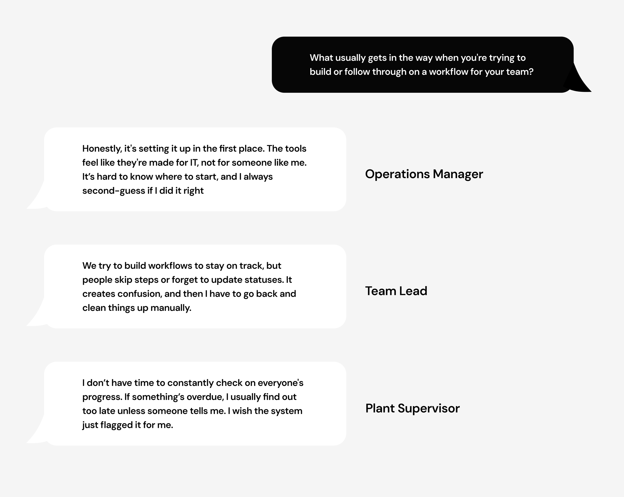 Competitive research showed workflow automation is a growing, but fragmented space, often optimized for developers or enterprise IT — not frontline operational teams.