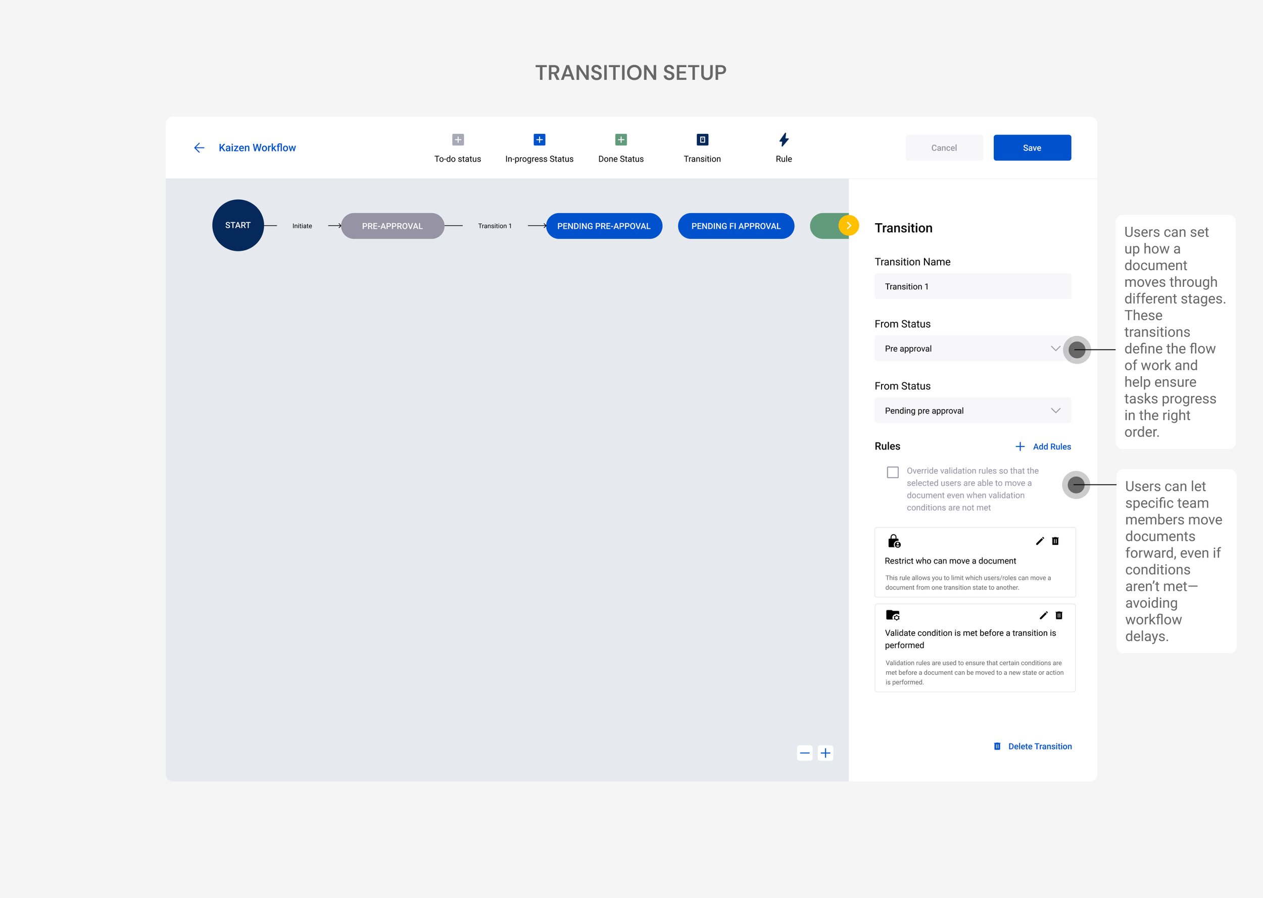 This lens helped us shape the workflow experience, by reducing friction, surfacing timely triggers, and making it easier for users to complete tasks with confidence and minimal effort.